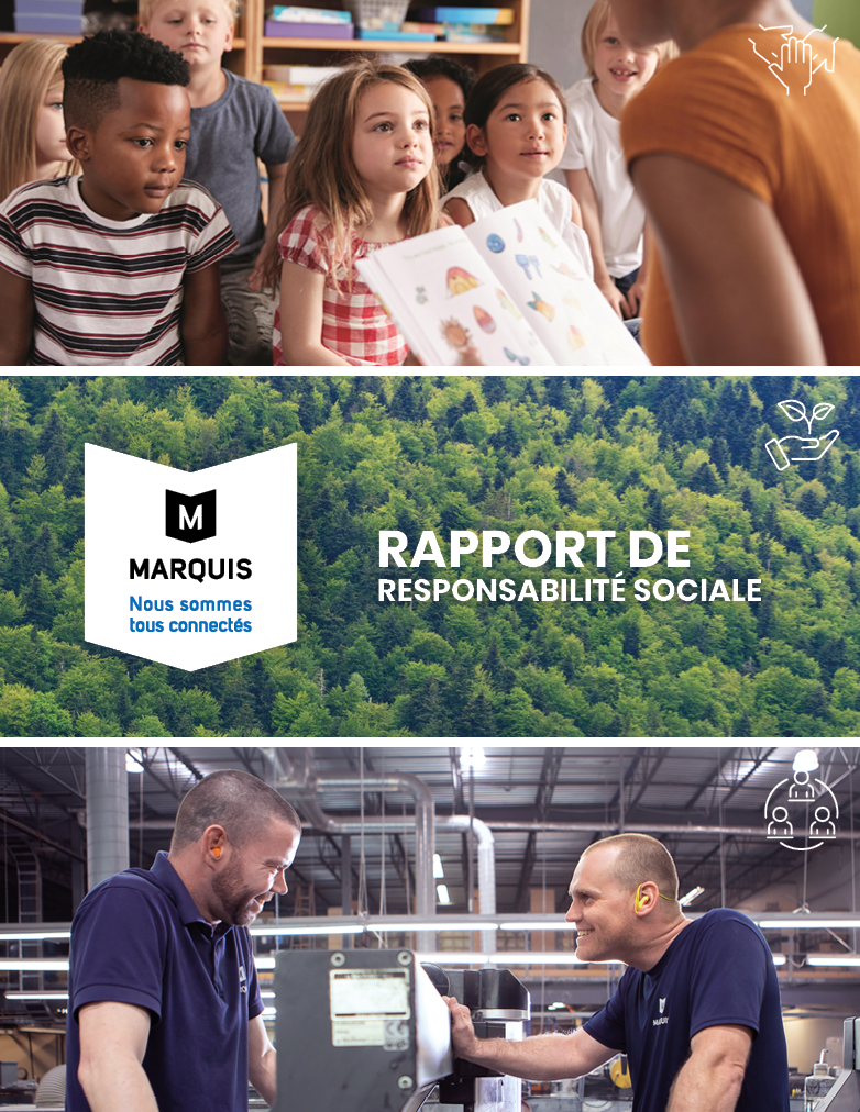 Marquis Imprimeur est fier de présenter sa politique environnementale et son rapport de responsabilité sociale. Nous nous engageons ici dans un processus rigoureux et souhaitons rester connectés aux trois piliers qui constituent les bases solides de notre responsabilité sociale :